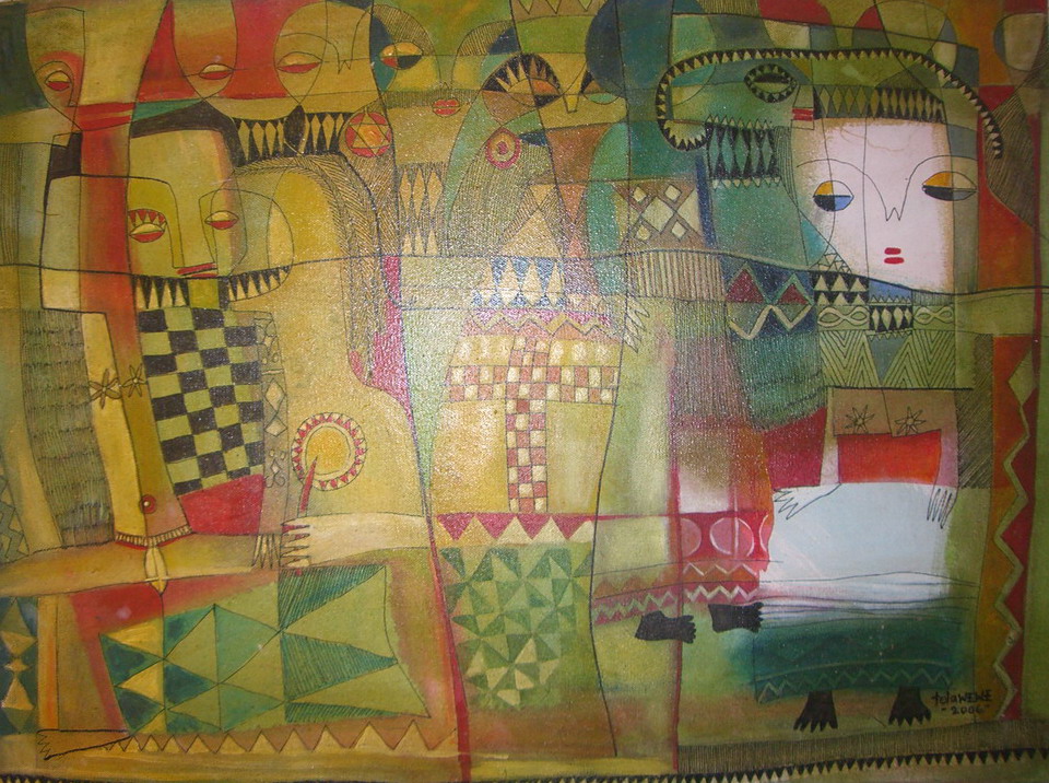 Von Stammgästen der Galerie bereits erwartungsvoll nachgefragt für Neueinsteiger vielleicht eine lohnenswerte Neuentdeckung: die Arbeiten der beiden Nigerianischen Maler Tola Wewe und Rom. Isichei und ein 1-oder 2-tägiger Workshop mit den beiden Künstlern aus Afrika. Ab dem 14.Juli (Ausstellungseröffnung 19:00 h) sind ihre neuesten Bilder in der Bettendorffschen Galerie Im Schlossgarten zu sehen .Man darf gespannt sein, was sie dieses Mal aus Lagos – beide leben und arbeiten dort- mitgebracht haben. „Royal Concubines“ und „Wedding Guests“ so die Titel der Bilder , die sie für die Einladungskarte ausgewählt haben, lassen vermuten ,dass wahrscheinlich Menschen, möglicherweise vorwiegend weibliche, das Sujet ihrer Malerei sein werden…