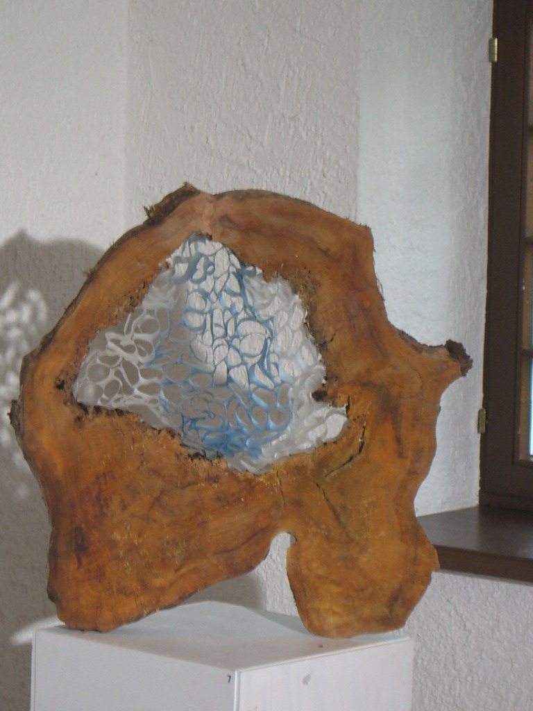 Die Heidelberger Künstlerin Caroline Laengerer wird mit ihren Objekten und Außeninstallationen aus unterschiedlichen Naturmaterialien in einen Dialog zu den beiden Malerkollegen aus Afrika treten. Das Galerieteam ist selbst gespannt auf diese Begegnung und erfüllt sich damit einen lange gehegten Wunsch : Kunst aus der „Metropolregion“ mit der von afrikanischen Künstlern zusammenzubringen. Caroline Laengerers Arbeiten „Wachsende Ringe“ oder „Schwemmholzstrudel“ werden sowohl in den Galerie- Innenräumen , als auch im weitläufigen Skulpturenpark ausgestellt sein und somit eine der interessanten Attraktionen für das am Sonntag, den 16.Juli ab 12 h stattfindende Sommerfest bilden.
