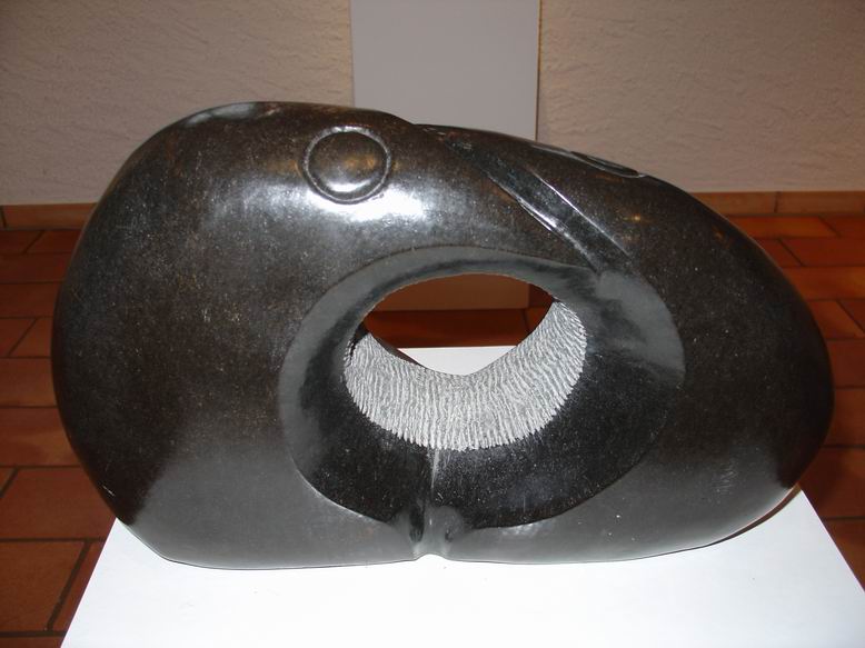 In der neuen Ausstellung der Bettendorffschen Galerie werden Shona-Tierskulpturen aus Simbabwe sowie neue Bilder des Malers Tola Wewe ausgestellt. Mit dem Begriff ‚Shona' wird die größte Bevölkerungsgruppe Simbabwes bezeichnet. Als junge Künstlerbewegung ist die Shona-Bildhauerei Ende der 50er Jahre entstanden und hat sich in der Gegenwart als eine der jüngsten Entwicklungen der internationalen Kunstszene etabliert. Überlieferungen alter Mythen und Legenden bilden die Grundlage künstlerischer Inspiration. Ein Geister- und Ahnenglaube liefert dabei den Stoff für Gestaltfindungen, die das Unsichtbare einer Gefühls- und Vorstellungswelt sichtbar werden lässt in Figuren mit expressiver Wirkung. Jeder ‚Shona' sieht sich unter dem Einfluss eines bestimmten Geistes, der ihm durchaus in erster Linie nützliche Eigenschaften bringt. Im Durchleben mehrerer Metamorphosen werden dem Menschen auch gleichzeitig mehrere Identitäten zugeordnet, was sich in einer Skulptur sowohl in Mensch-Tierkombinationen als auch in kubistisch anmutender Mehrperspektivität zeigen kann. Ein Gesicht kann also ‚tierisch-menschlich' wirken und dabei noch in verschiedene Richtungen blicken. Die bei der neusten Ausstellung der Bettendorffschen Galerie ausgesuchten Tierskulpturen entstanden sicherlich vor dem Hintergund des sozialen Umbruchs durch Bürgerkriege, der Unabhängigkeit des ehemaligen Rhodesiens und missionarischer Einflüsse. Umso erstaunlicher ist die unkomplizierte, direkte Wirkung der Skulpturen, die ihre Expressivität auch in humorvoller Spannung und Ironie entwickeln. Auch ohne das Wissen um Mythen und Legenden ziehen sie den Betrachter in ihren Bann und lassen eigene ‚Geschichten' entstehen.